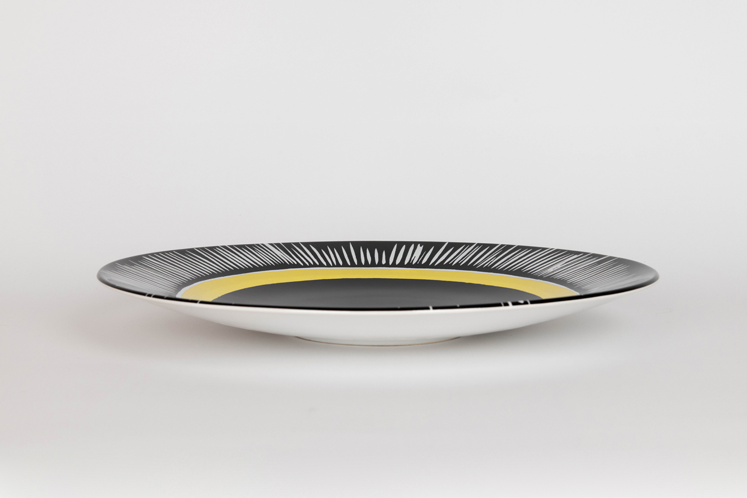 Created in collaboration with the Terry Frost Estate, this limited edition ceramic platter is based on an original linocut made by Frost in 1990. Trewellard Suns, No 4 was inspired by the rising and setting of the sun over the village of Trewellard near the artist’s home in Cornwall.