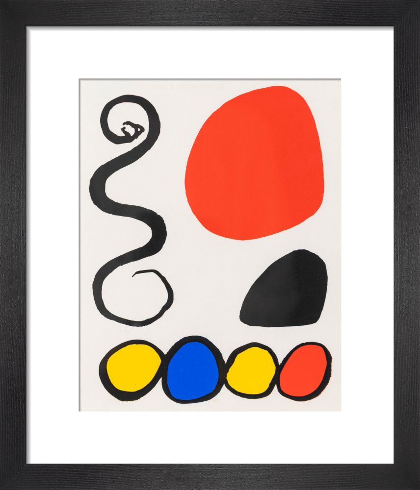 Alexander Calder (1898-1976) was an American artist whose radical, kinetic approach to sculpture revolutionised the medium. Most famous for his 'mobiles', Calder's work explores the relationship between form and movement. Bold, primary colours complete the iconography of his work. Calder was also one of many prominent artists to collaborate with the New York branch of Atelier Mourlot. His whimsical designs were featured on lithographic posters to promote the new studio.