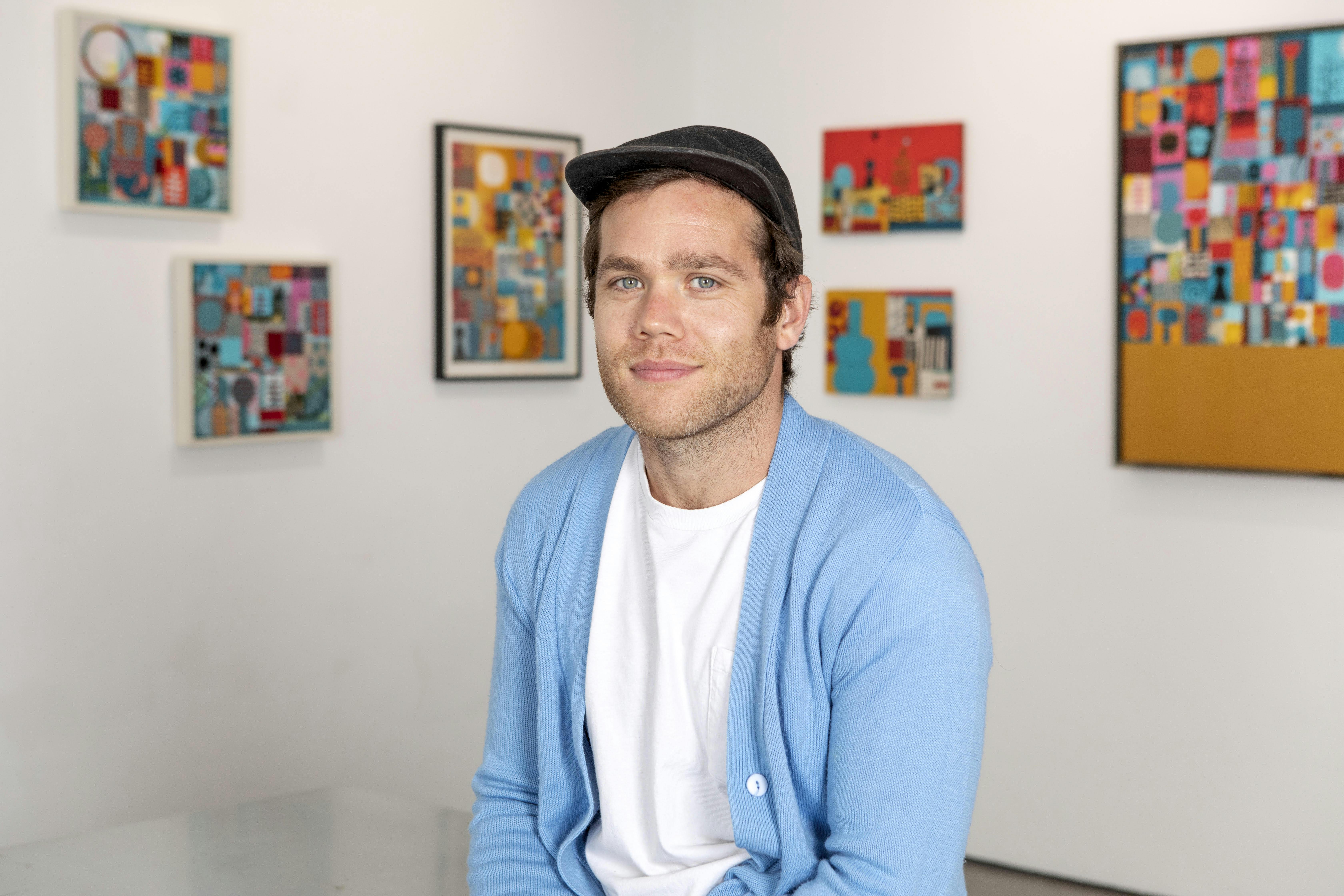 London based artist Hormazd Narielwalla produces bold abstract compositions against a backdrop of signature vintage tailoring patterns. The award-winning artist explores the depiction of the human body, identity and transformation in his works.
