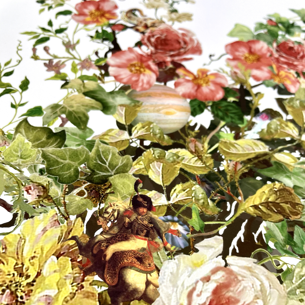 Born and bred in a video shop in London’s Kings Cross during the 80s, quirky collage artist Rosco Brittin always knew he wanted to be different. He tells us about his struggle to become a full-fledge artist after being the front man of a rock and roll band, his infatuation with flowers, and an intriguing ‘spirit genie’ that offers him creative fuel.