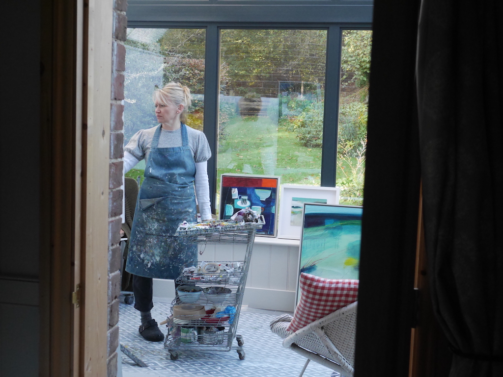 I take turns with my husband to walk our dog, Harry, in the morning. When I am not doing that I generally go for a run in the country lanes near our home, back for coffee, and try and get in the studio for 10 am, where Radio 4 goes on.