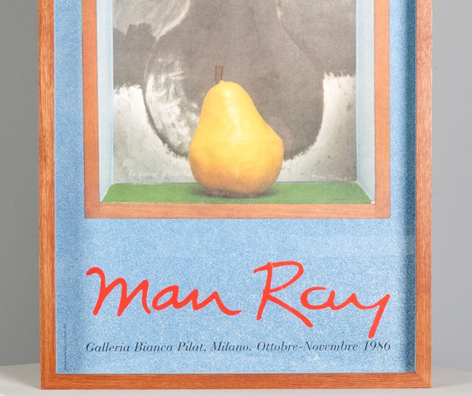In 1986, marking ten years since Ray’s death, Milan-based gallery Galleria Bianca Pilat held a month-long exhibition dedicated to the artist. Bianca Pilat, the owner of the gallery, was also involved in editing and compiling a catalogue of Ray’s graphic works. The exhibition poster featured Poire d’Erik Satie and was printed by Multipla, Italy.