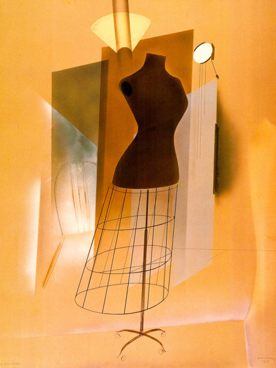 Irons, sewing machines, mannequins and needles are often featured in his paintings and photographs. ‘La Voliere’, 1919, one of Ray’s early airbrush paintings, depicts his New York studio complete with a dressmaker’s mannequin he famously kept as a companion.