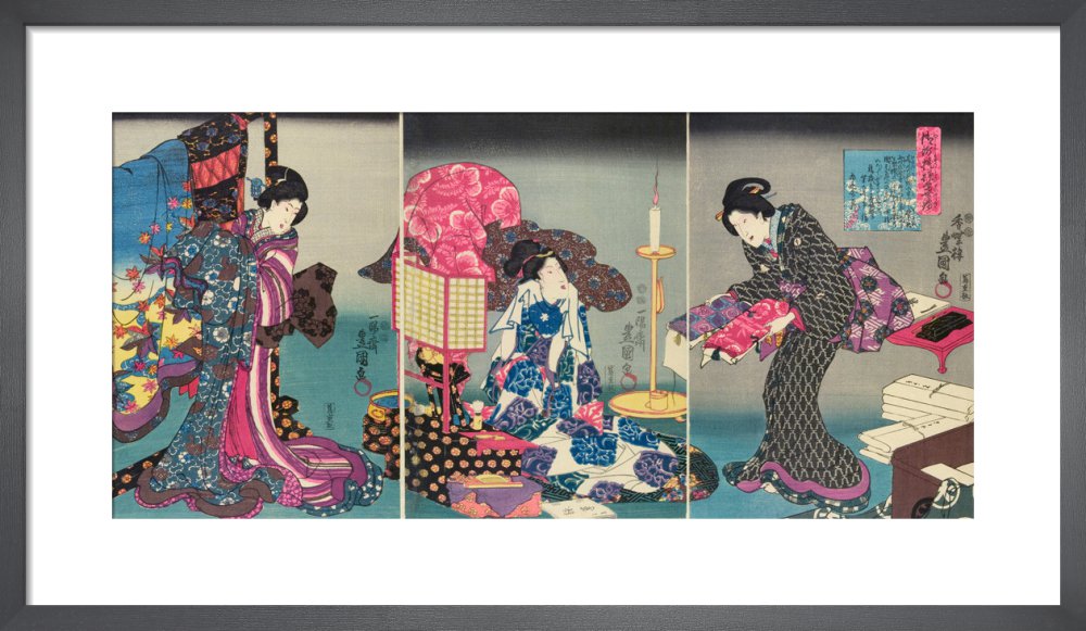 While Japanese woodblock prints were first produced in black and white, with occasional hand-colouring, full-colour printing, known as nishiki-e (‘brocade pictures’) became available from the 1760s.