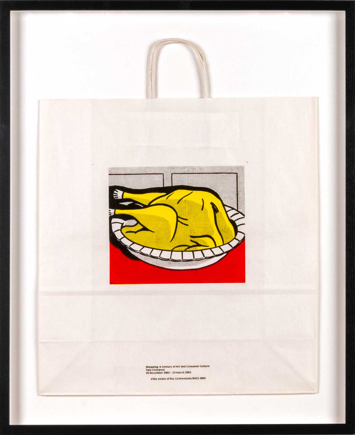 We produced this now very rare silkscreen featuring Lichtenstein’s ‘Roast Turkey Shopping Bag’ in conjunction with the exhibition ‘Shopping: A Century of Art and Consumer Culture’ at Tate Liverpool, 20th December 2002- 23rd March 2003. It is available on a first come, first serve basis. Learn more.