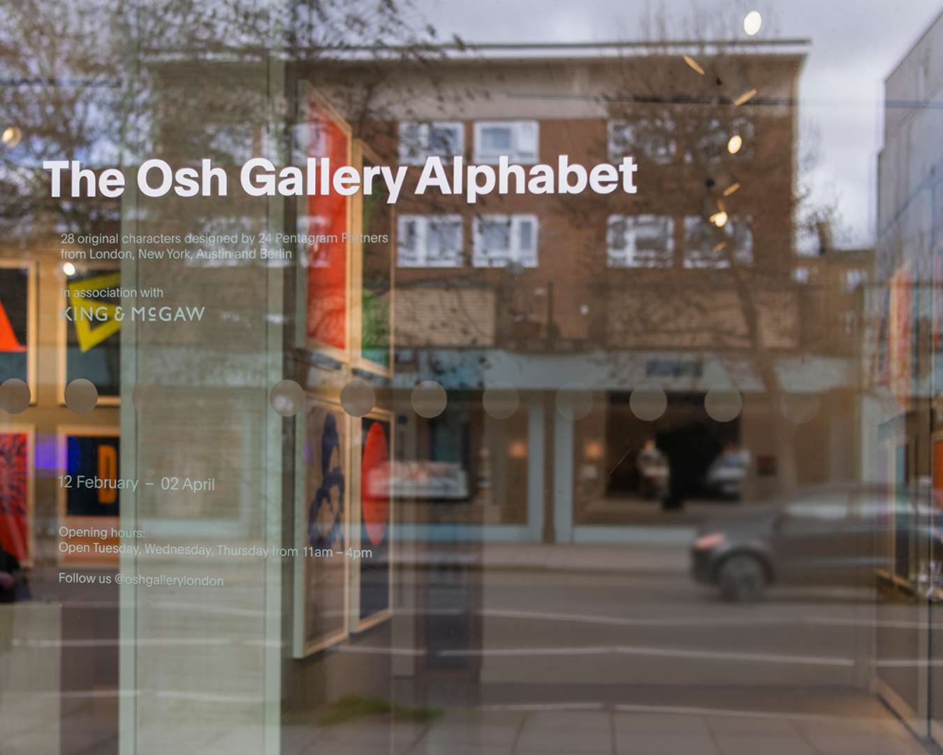 The Osh Gallery Alphabet will be on show until Thursday 02 April at Pentagram London’s gallery space in Islington, London N1.